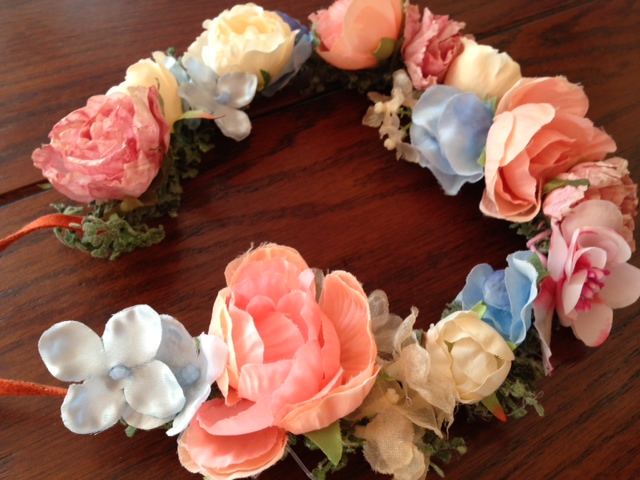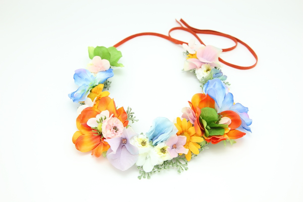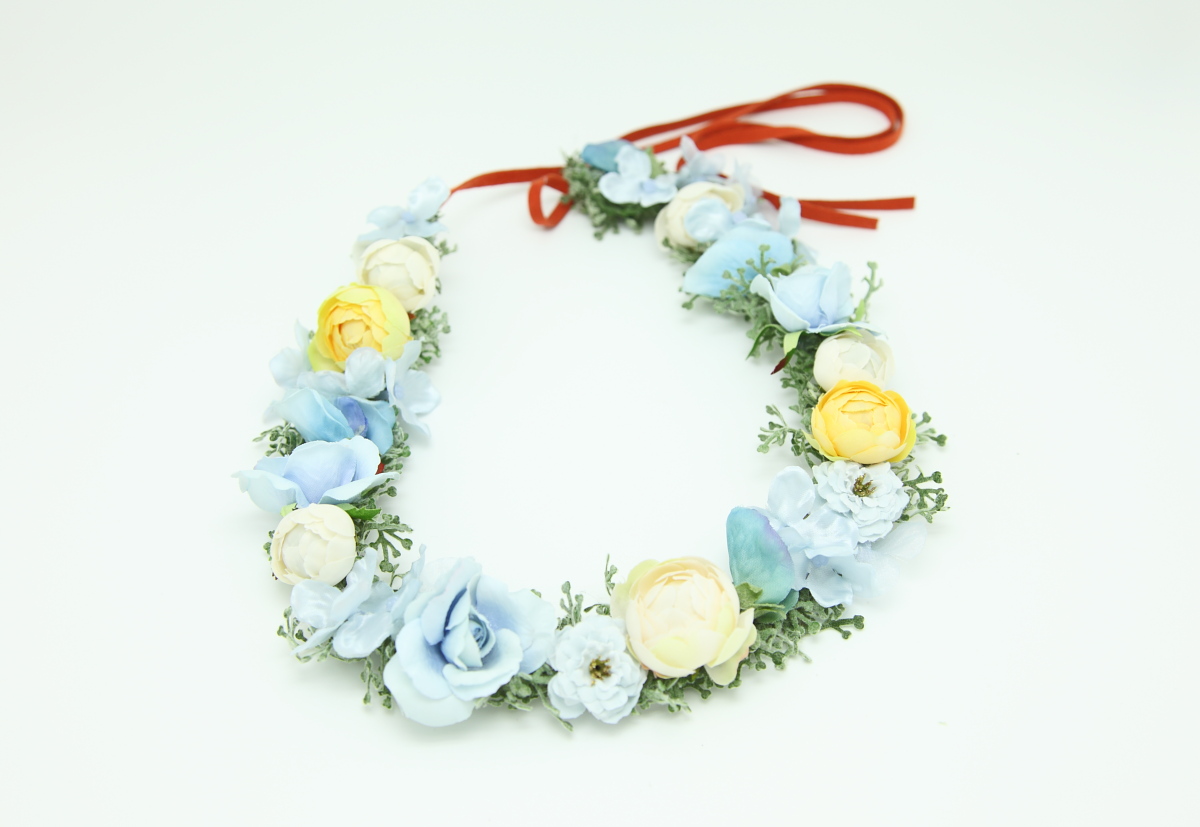 青いカラードレスに合わせたリースをオーダーいただきました。