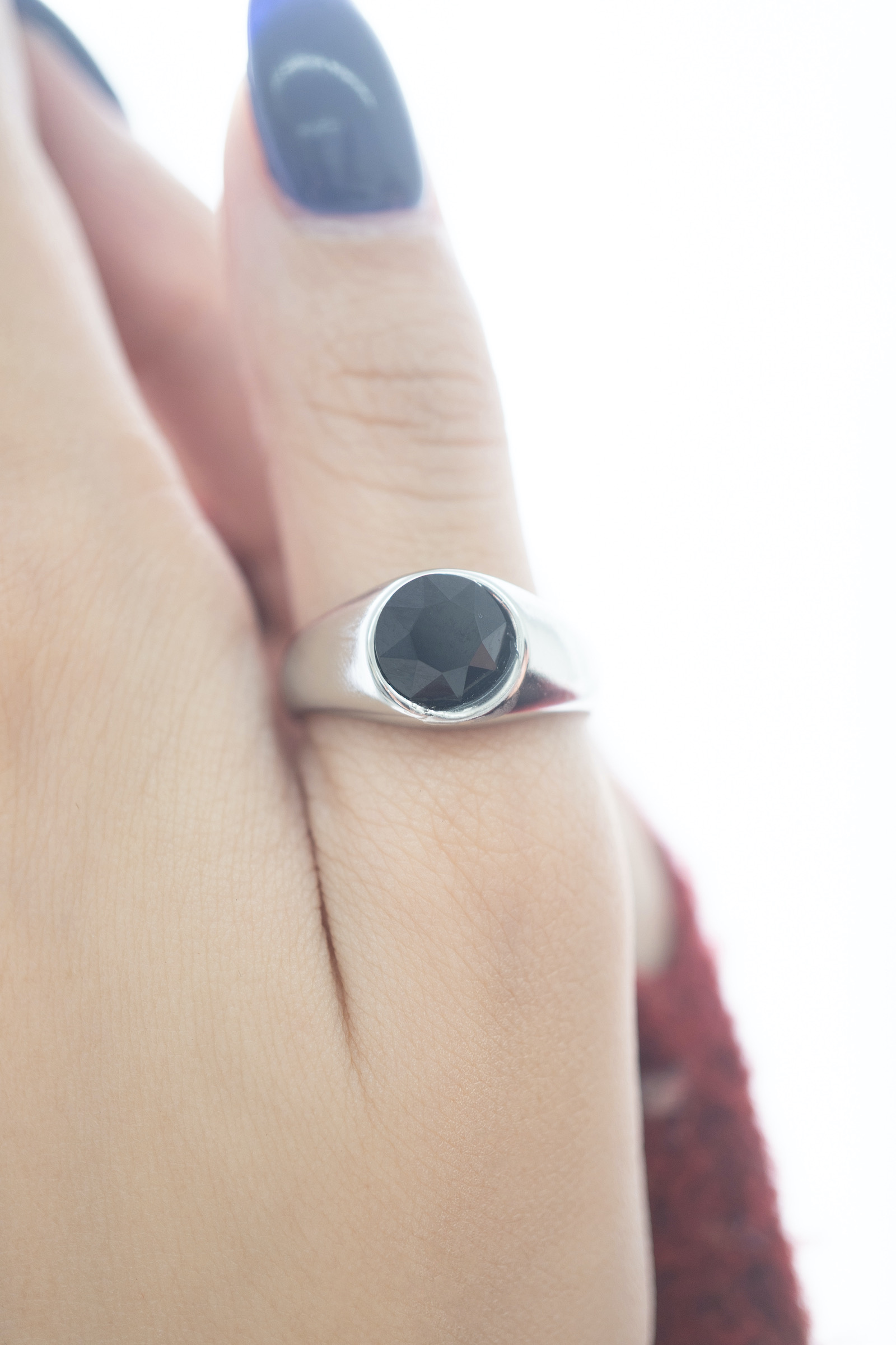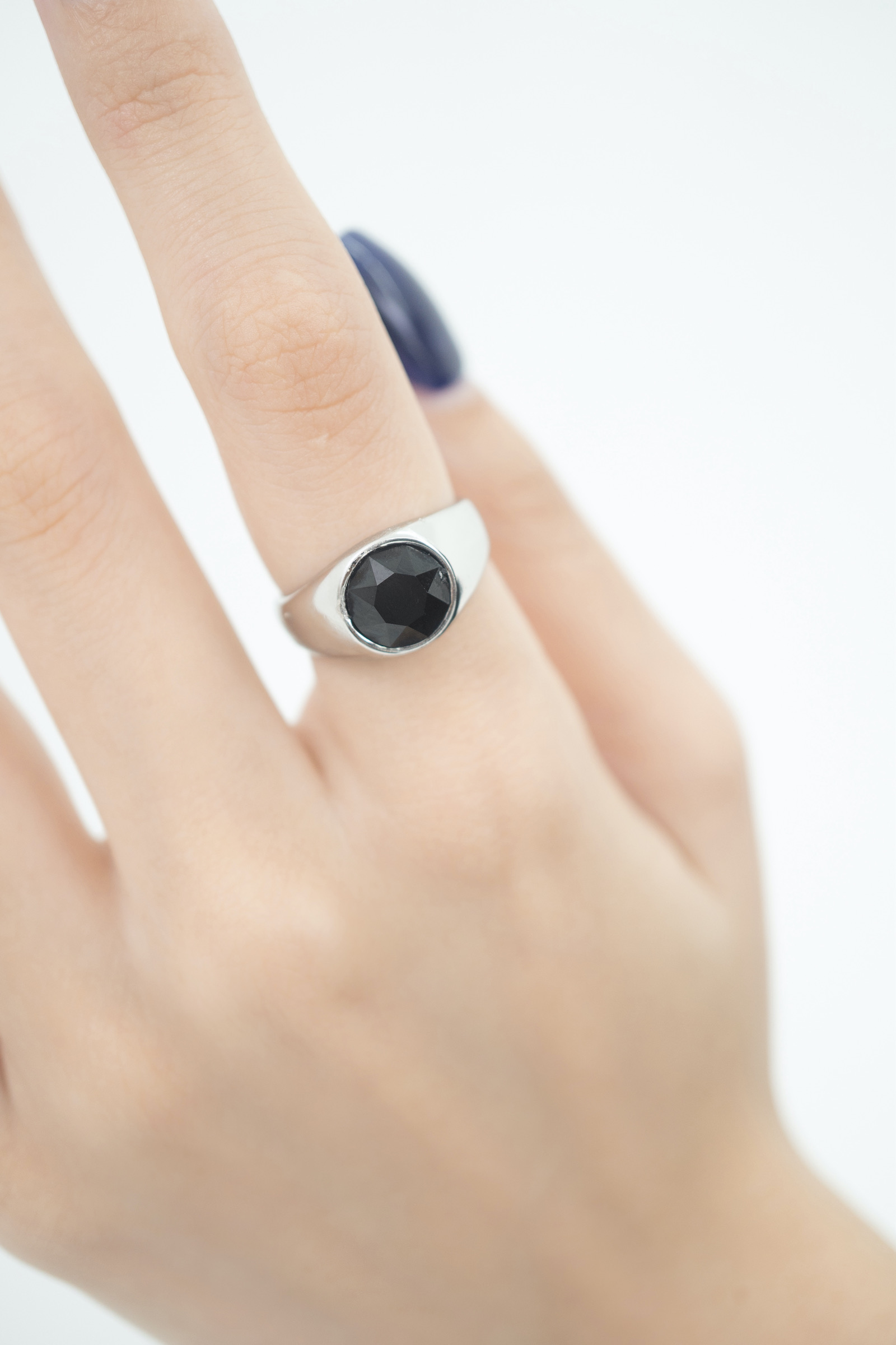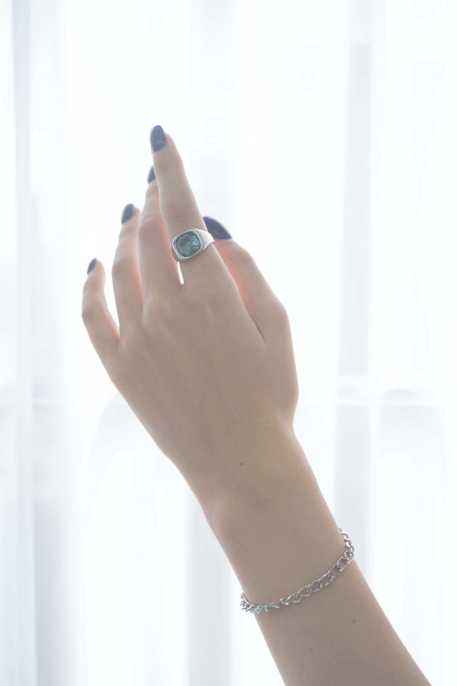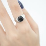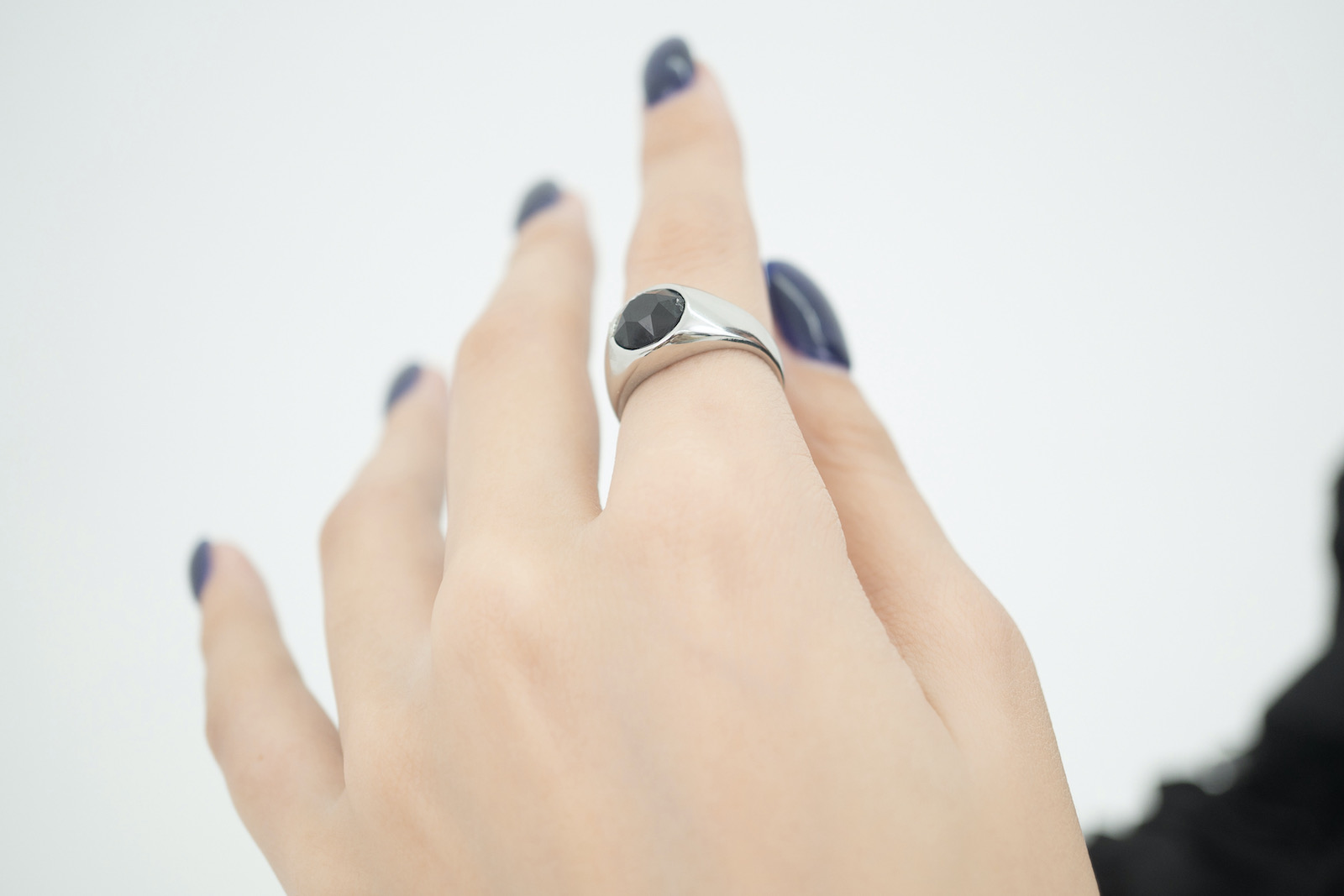 しのさんの大好きな深いグリーンとマットなブラックのクリスタル入りリング。