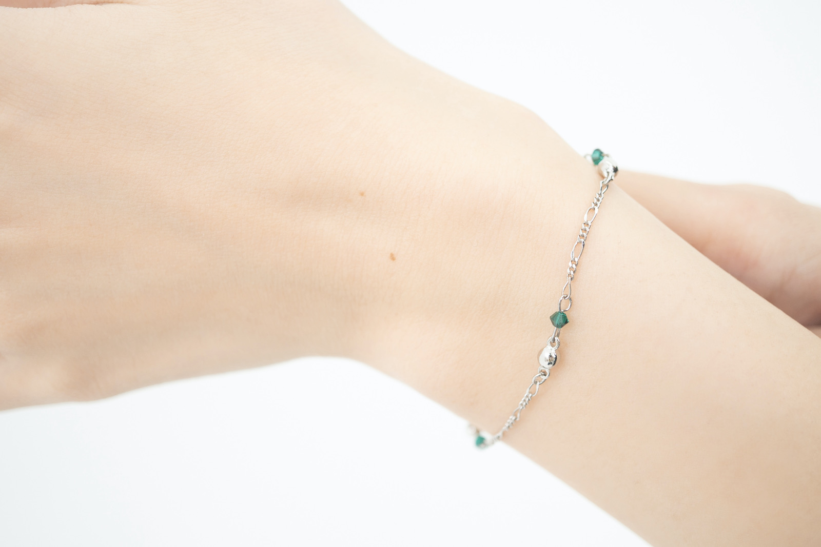 クリスタルブレスレットに合わせて2本つけしてもとっても素敵です。