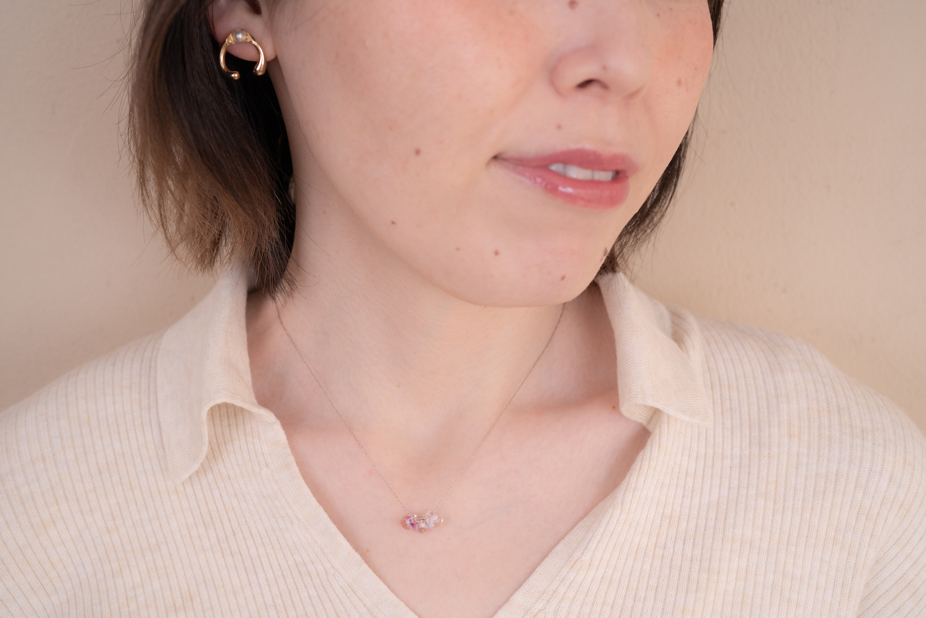 全てせいこさんにパーツを選んでいただいたおかげで、せいこさんの優しい雰囲気にぴったりのアクセサリーが生ました。