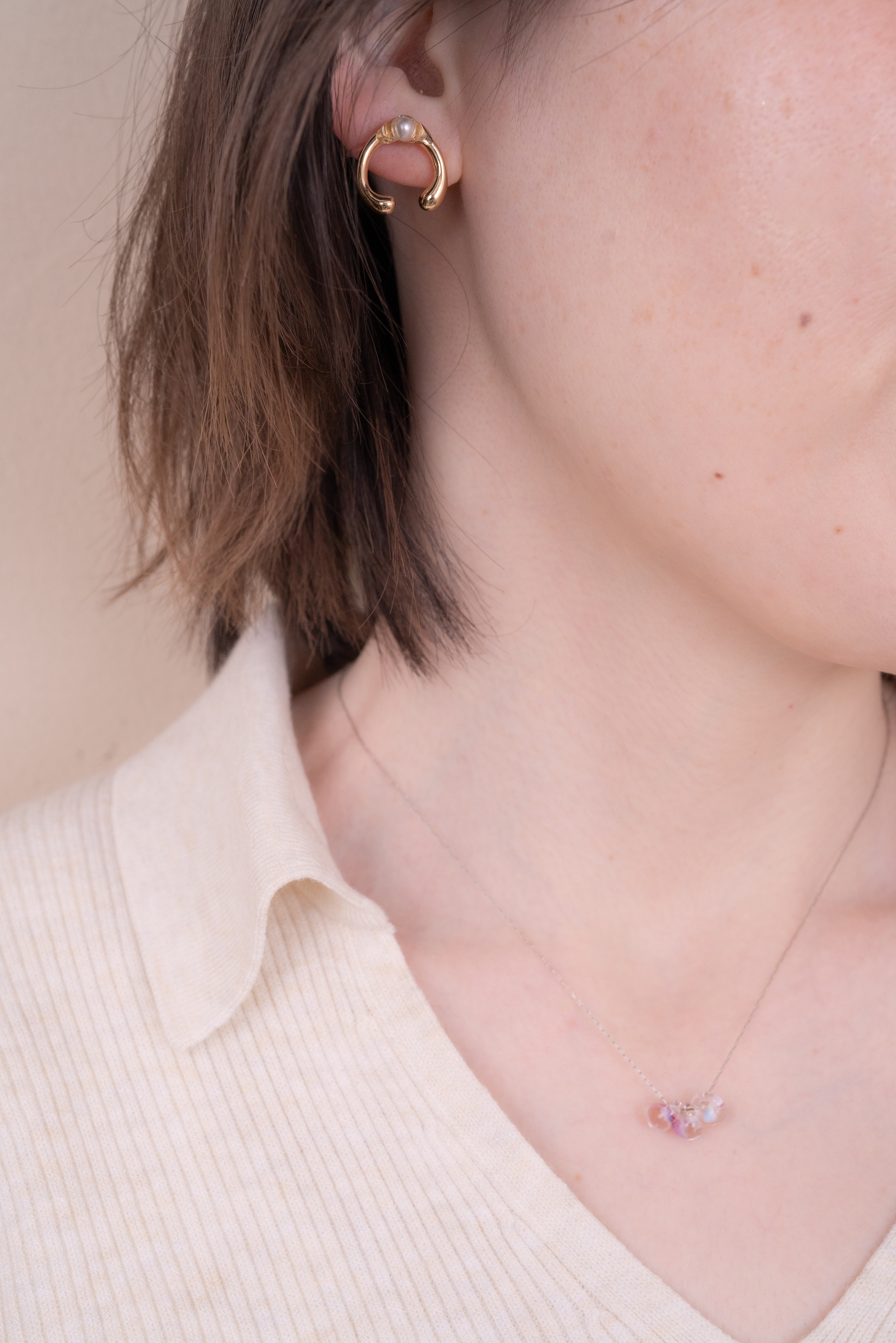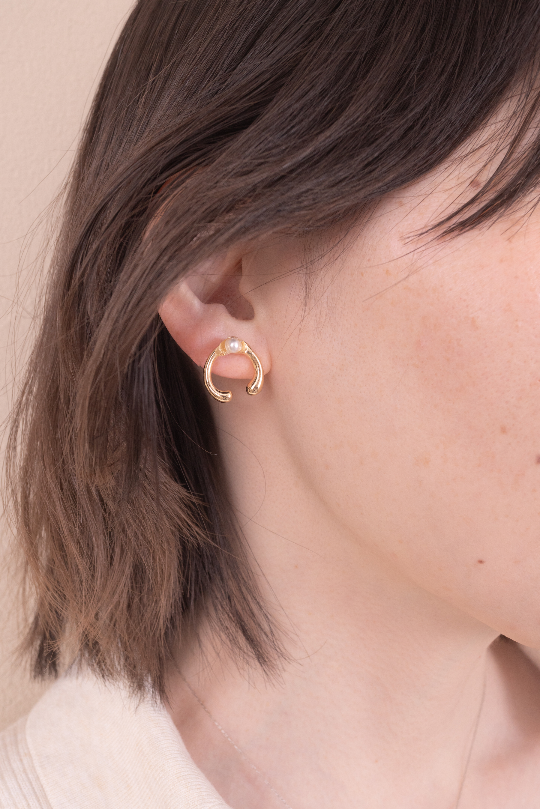 耳に寄り添うような形の耳飾り。