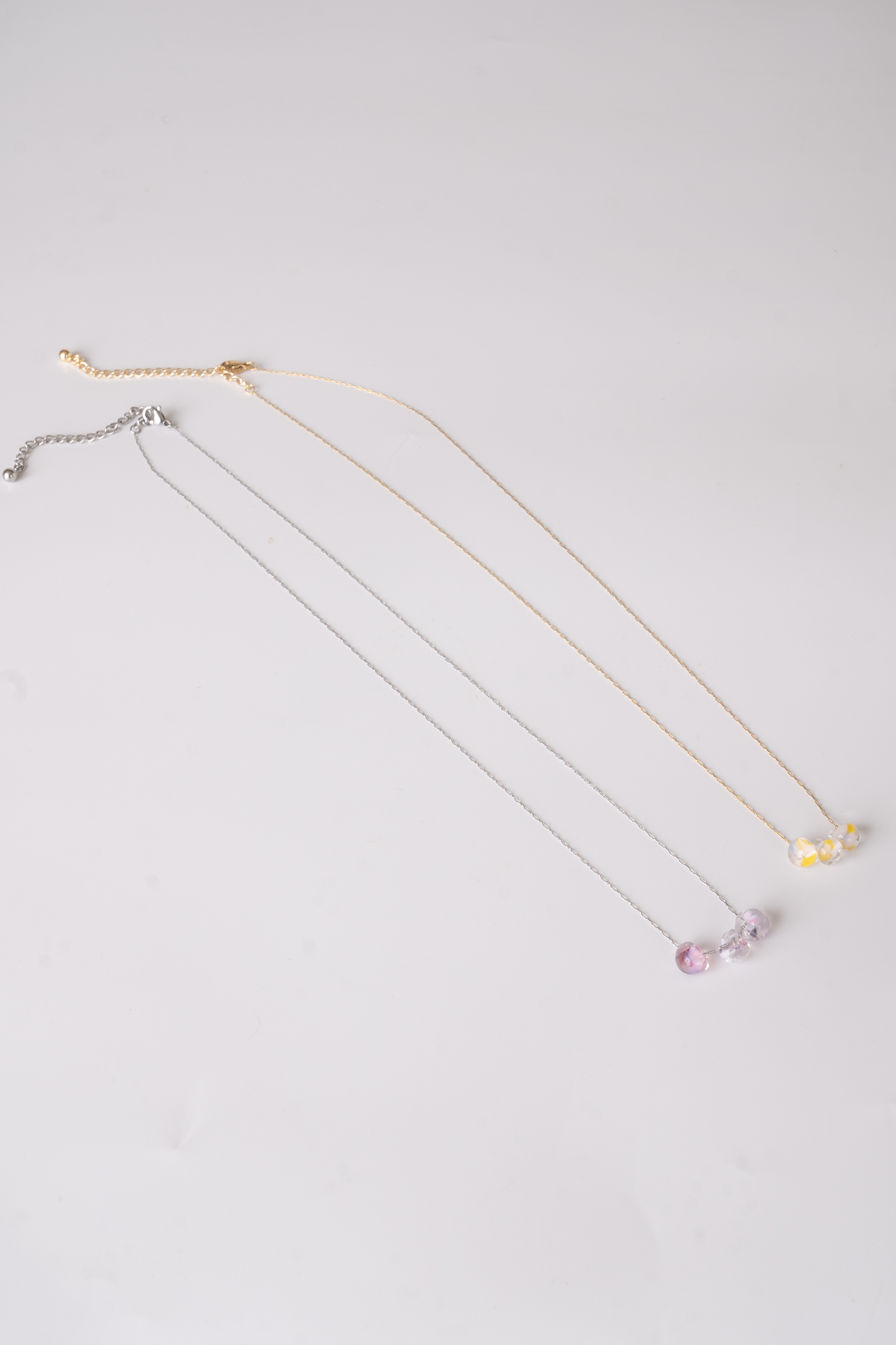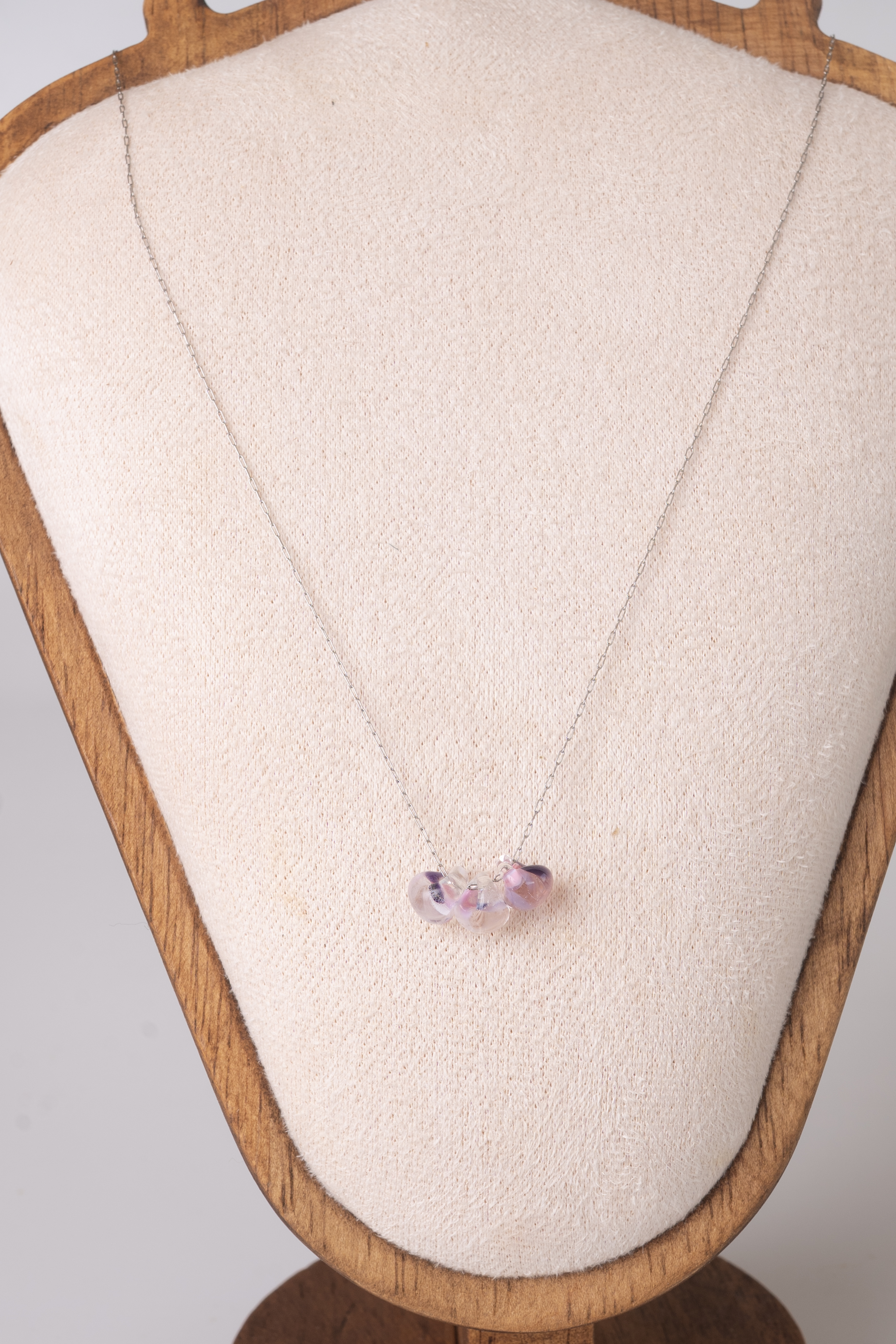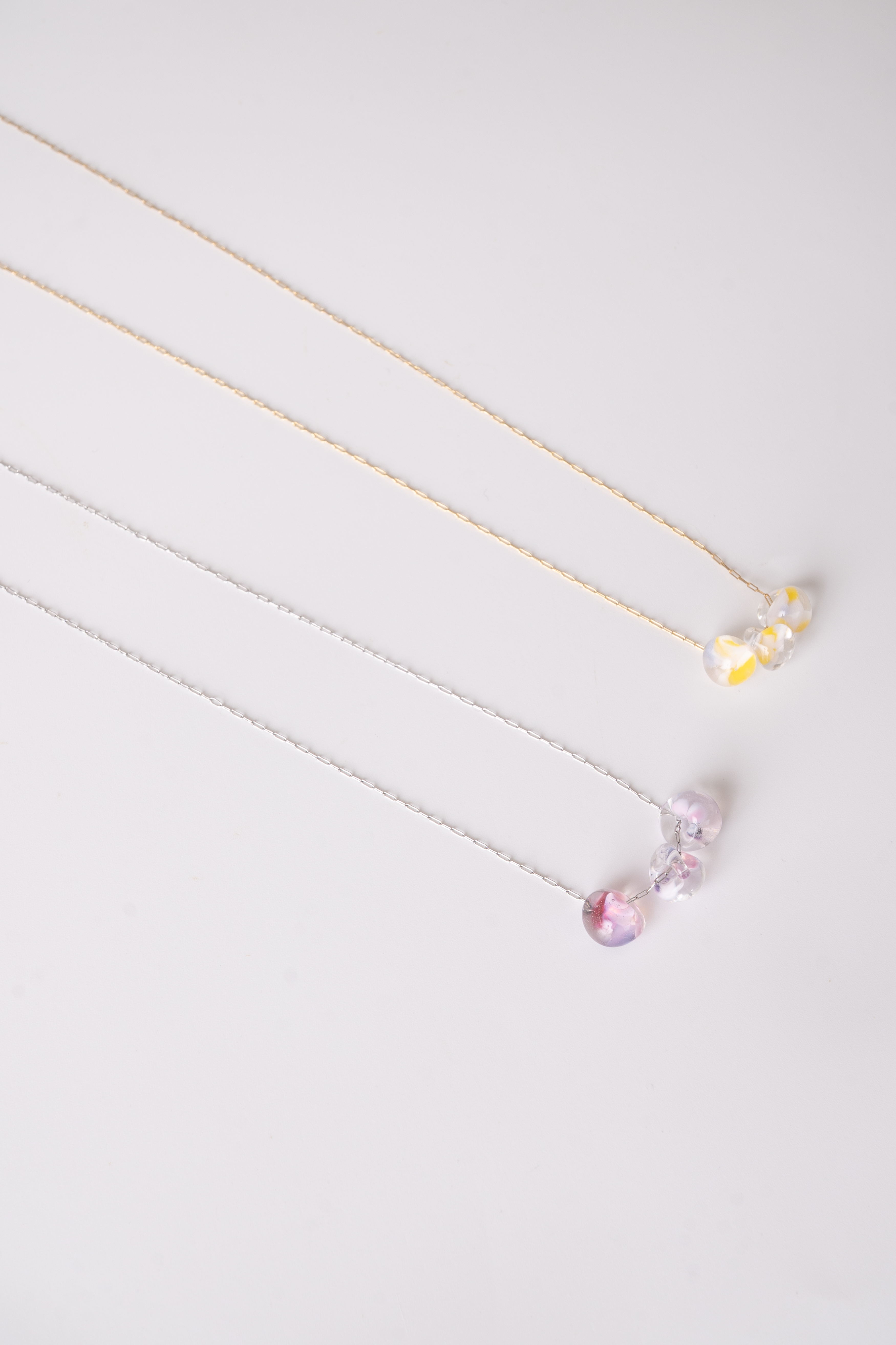 小さなカラーガラスがころんと可愛らしいネックレス。