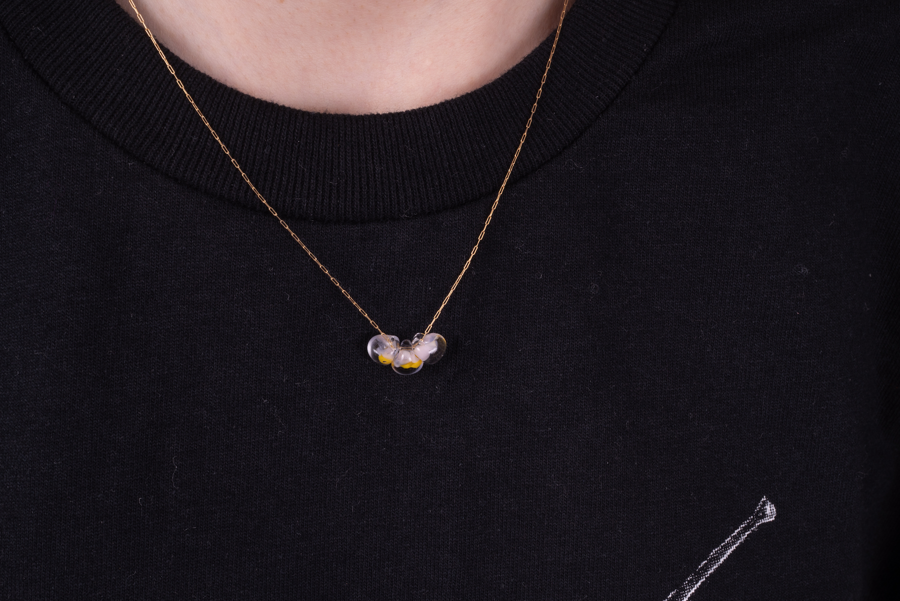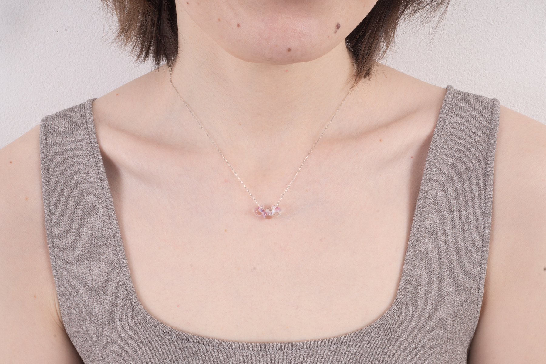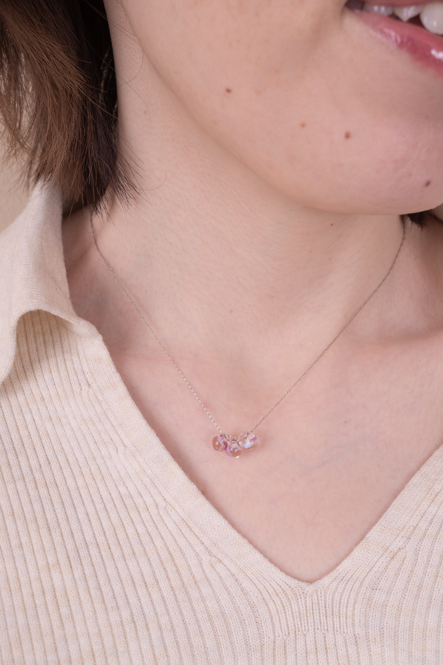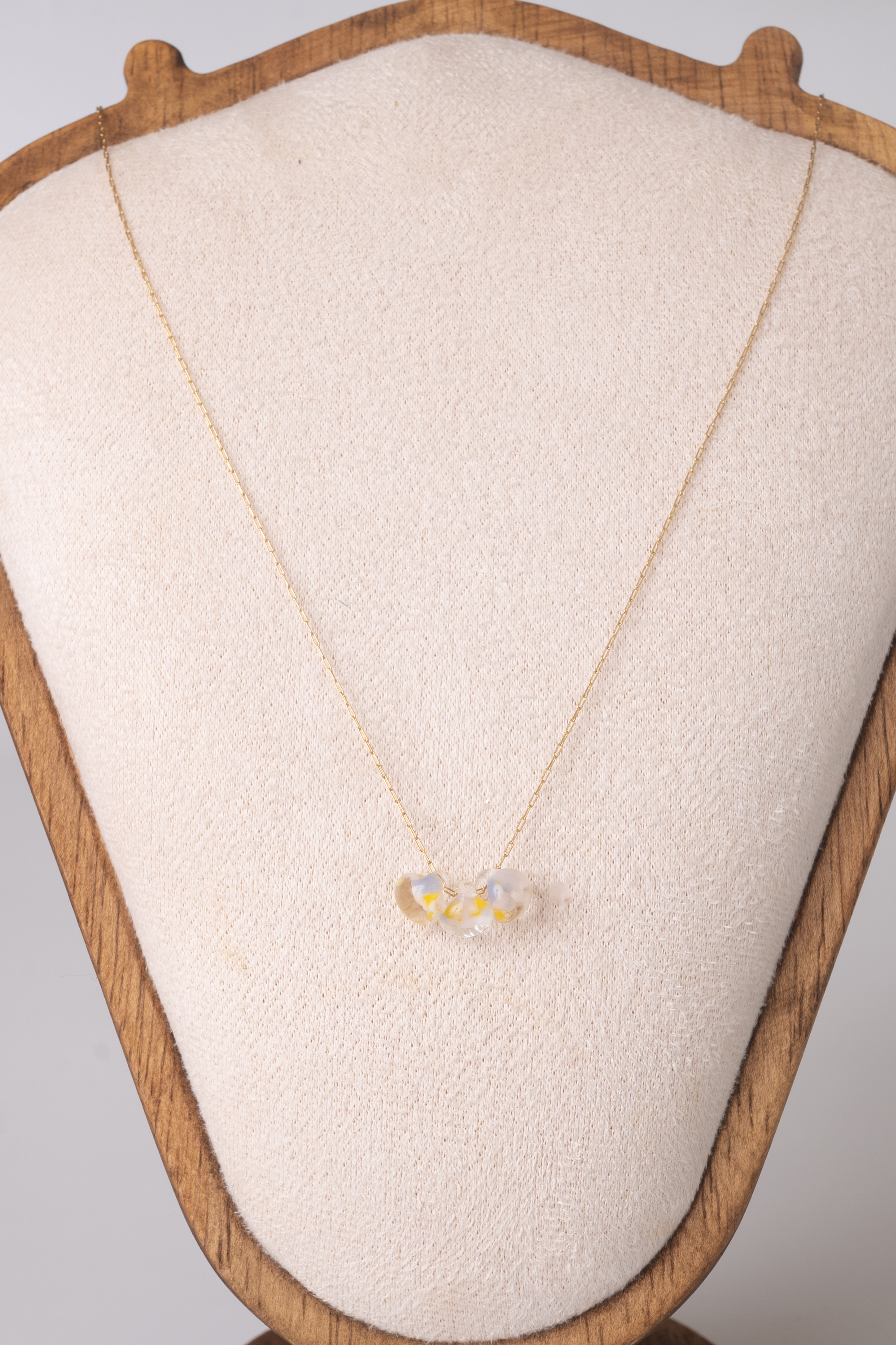 小さなカラーガラスがころんと可愛らしいネックレス。