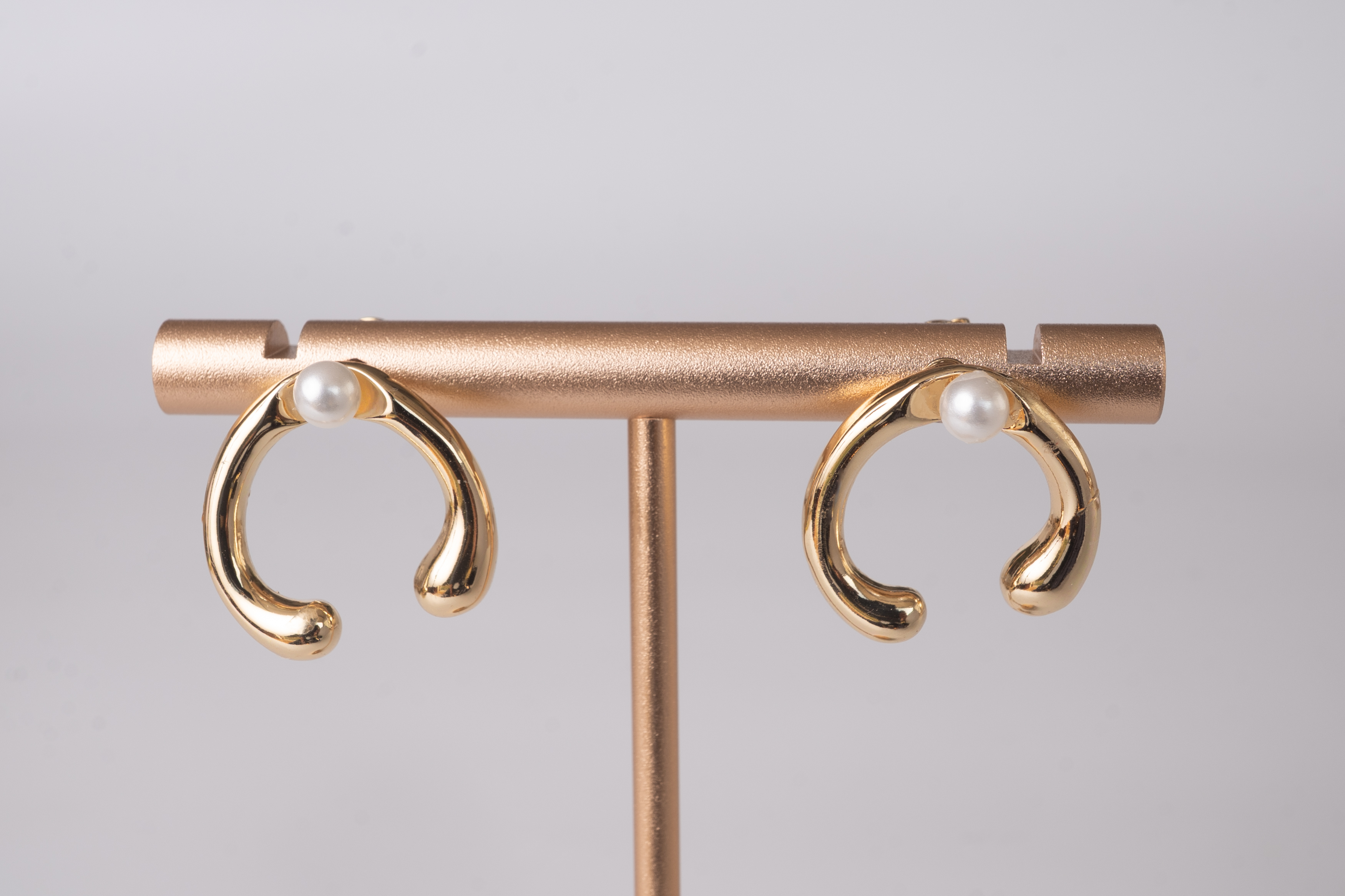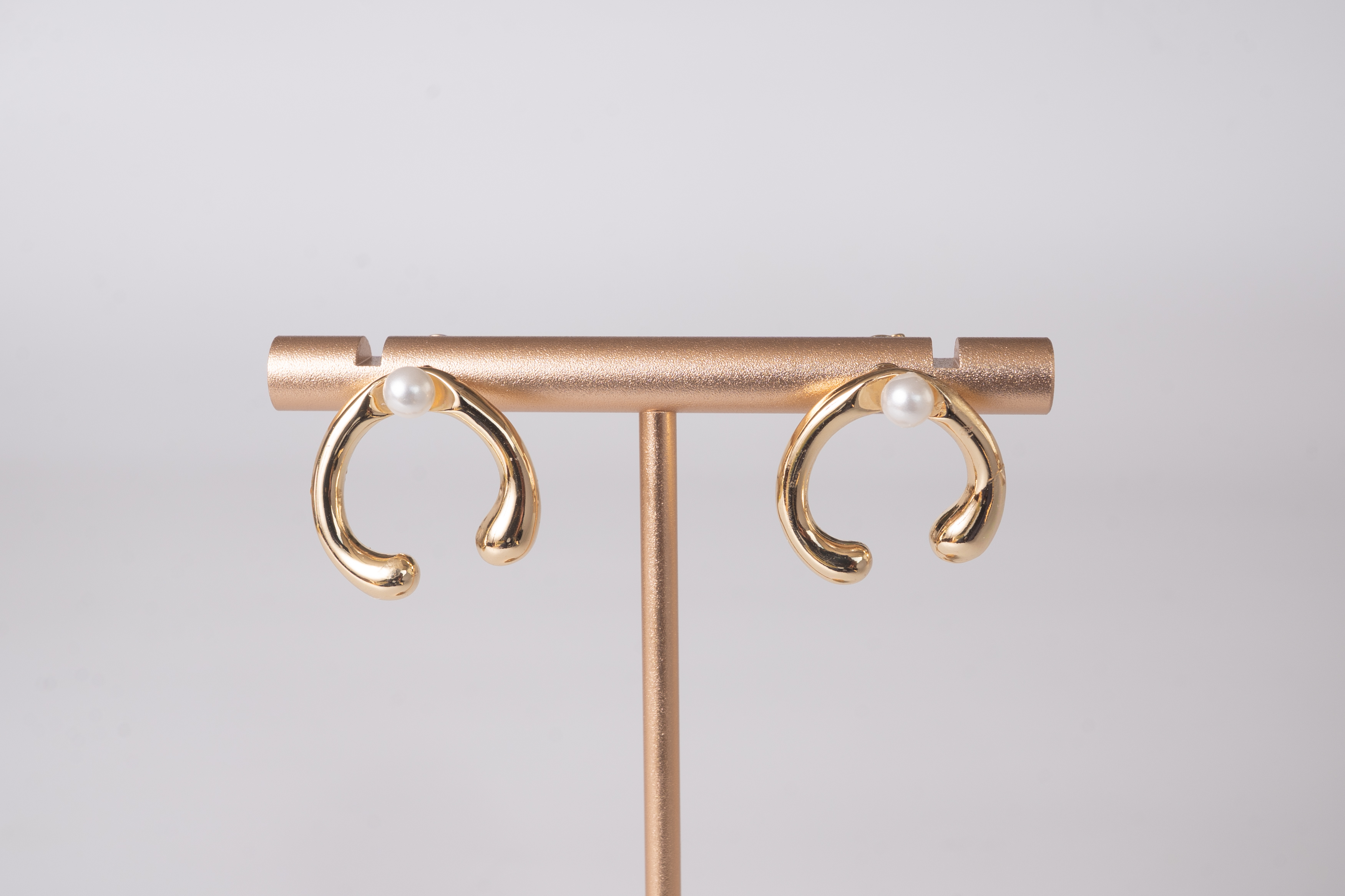 半円のパールを使った月の形をしたイヤリング&ピアス。
